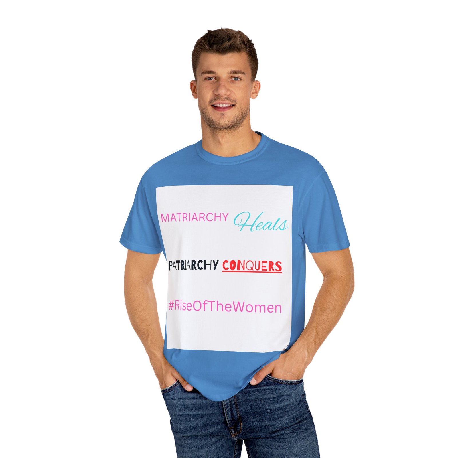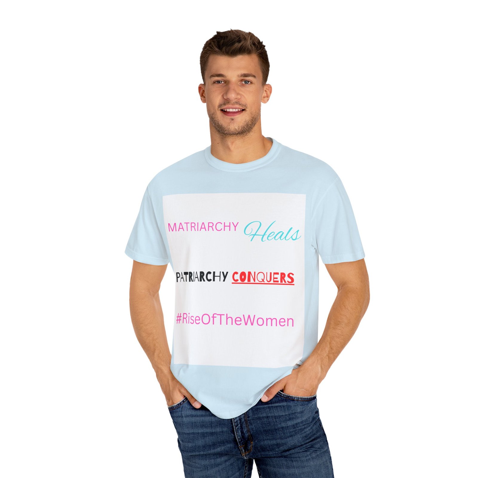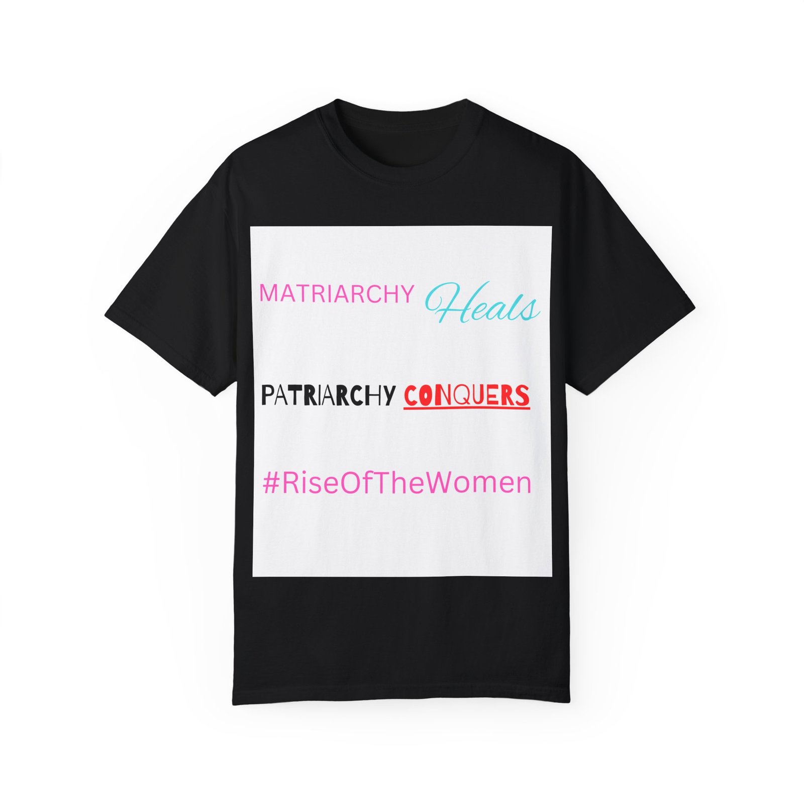 Empowerment meets comfort with this Rise of the Women T-shirt. The soft garment-dyed fabric and relaxed fit make it perfect for everyday wear, whether it’s for a casual day out or a statement piece at a rally. This tee is relevant to those who support women’s rights and empowerment and is great for feminist activists, supporters, and allies. Ideal for Women’s History Month, International Women’s Day, and everyday wear.